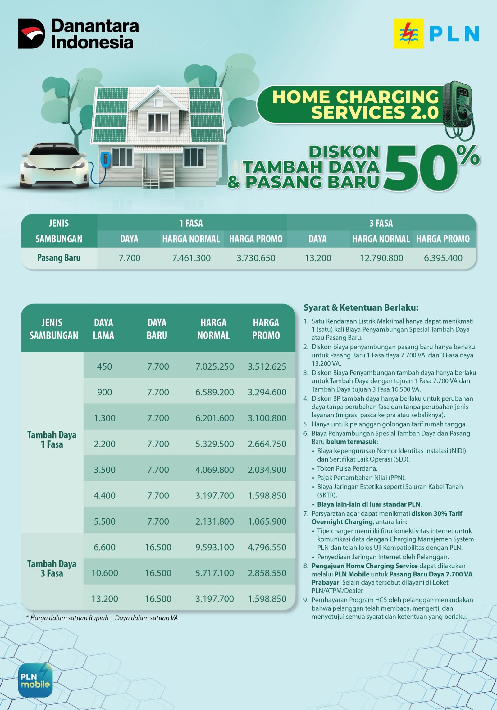 “Kami mengajak seluruh pelanggan untuk dapat memanfaatkan promo diskon 50% pasang baru dan tambah daya layanan Home Charging Services ini. Segera mendaftar melalui aplikasi PLN Mobile dan nikmati seluruh kemudahan layanan kami,” tutup Darmawan. (@dex)